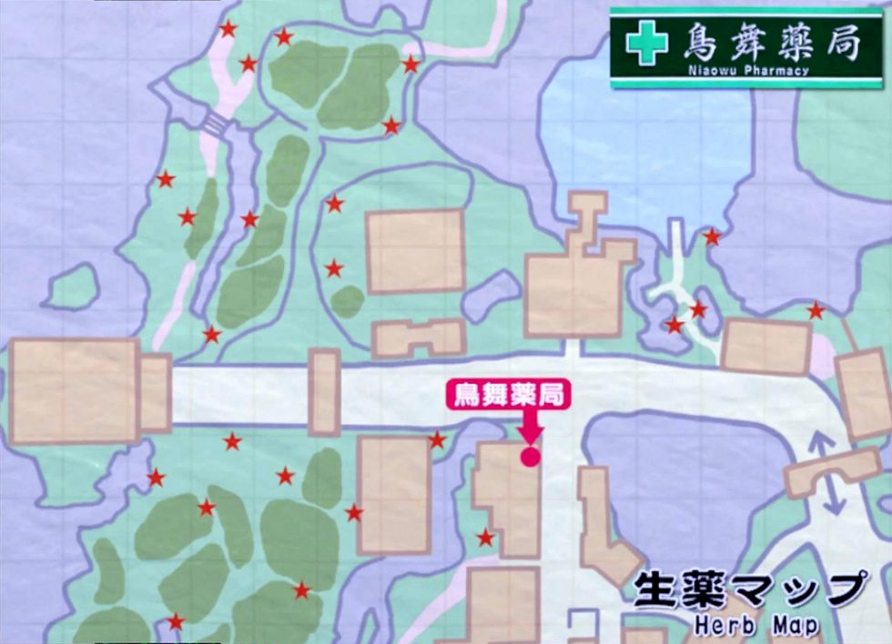 Pour débloquer l’ensemble de la ville, il faudra progresser un peu dans l’histoire et atteindre le moment où Ryo aura combattu les Serpents rouges dans la salle VIP de l’Oie dorée. Il est également possible d’obtenir 4 plans dédiés aux herbes chez les 4 herboristes de la ville, un pour chaque boutique.