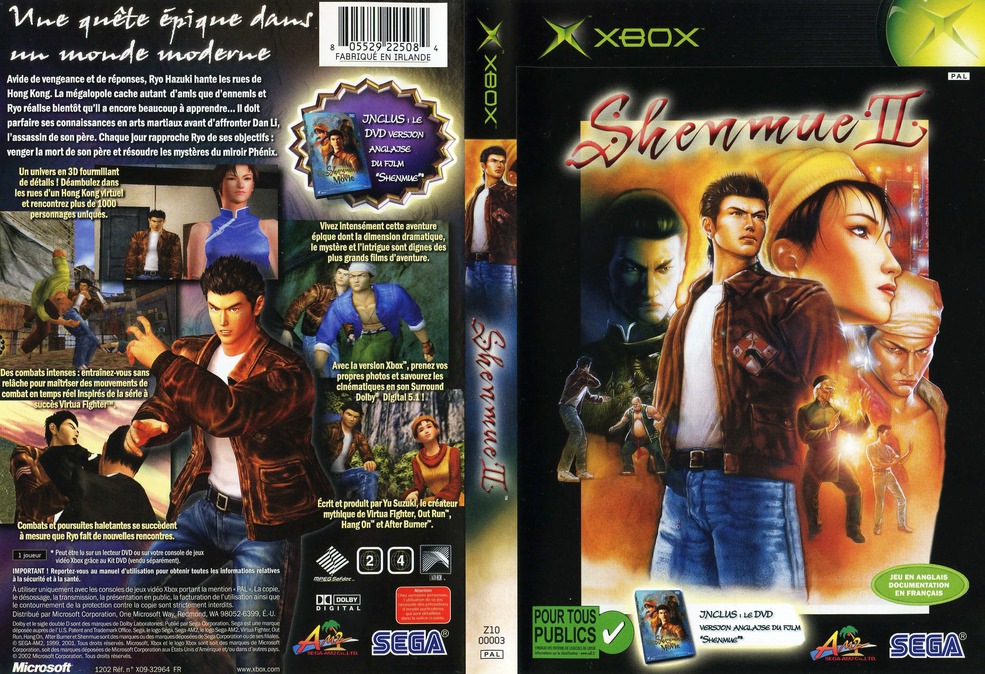 Et dire que SEGA comptait sur Microsoft pour assurer la promotion du jeu… La jaquette française de Shenmue II sur Xbox est malheureusement célèbre pour la faute d’orthographe « Dan Li » au lieu de « Lan Di ». Merci à SEGA Mag pour la source du scan.