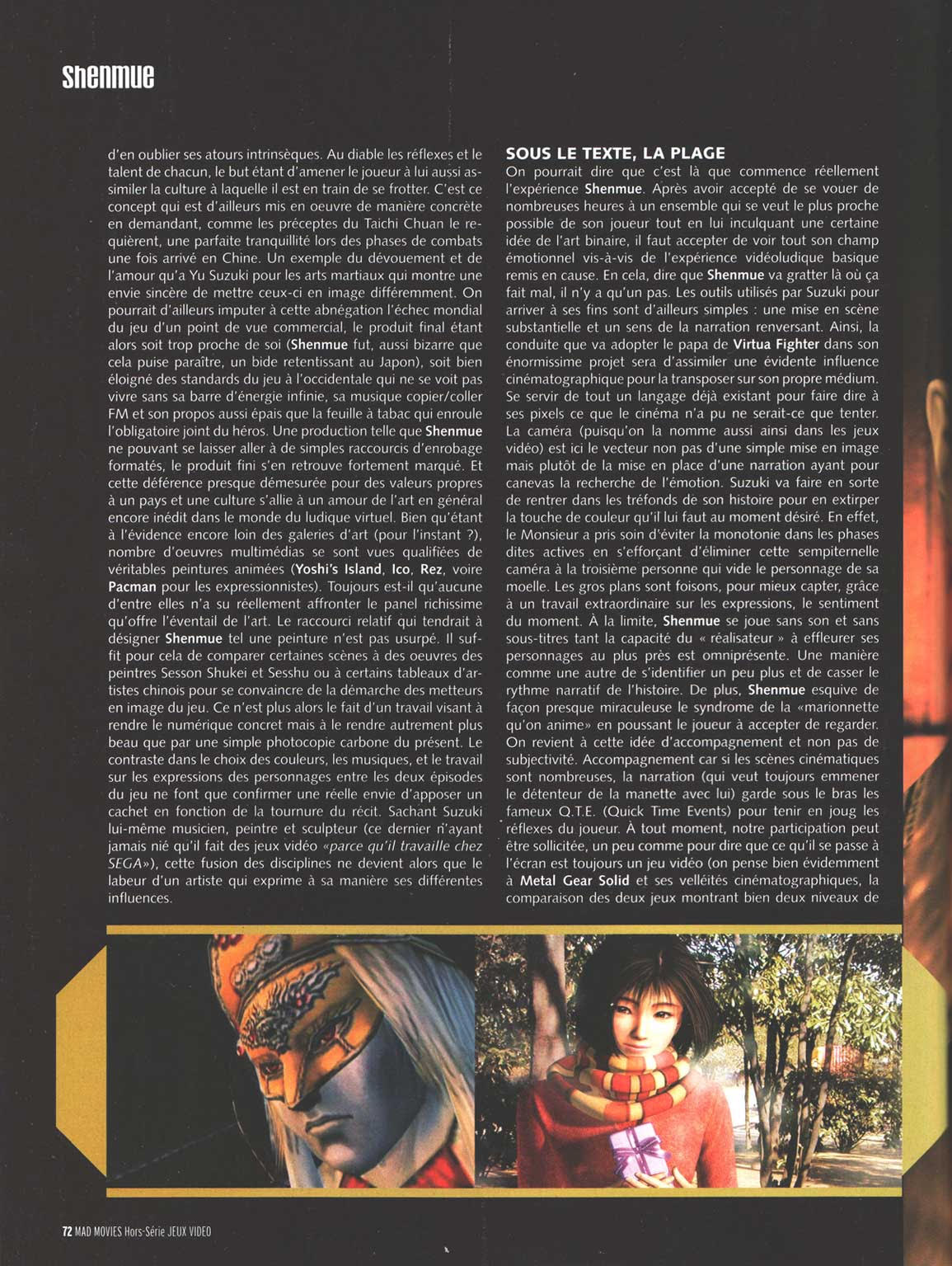 Quand le jeu vidéo fait son cinéma (01/04/2006) Type : Dossier - Format : Magazine - Media : Mad Movies - Numéro : HS n°009 - Auteur(s) : Tarik ZERGLAIN - Langue : FR Pour un meilleur confort de lecture, n'hésitez pas à ouvrir l'image de l'article dans un nouvel onglet.