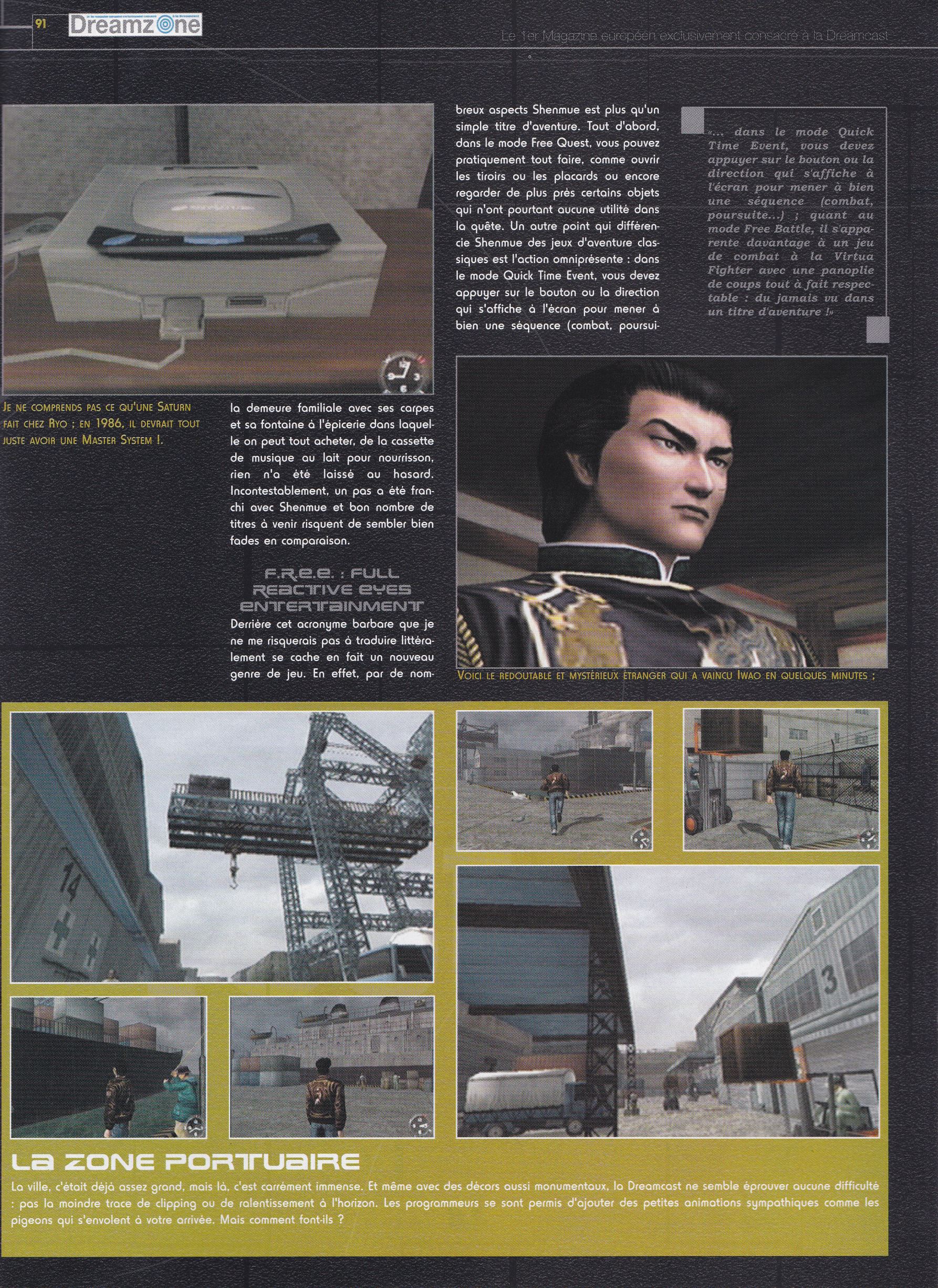 Test de Shenmue (version japonaise) (01/02/2000) Type : Test - Format : Magazine - Media : Dreamzone - Numéro : n°9 - Auteur(s) : Antoine - Langue : FR Pour un meilleur confort de lecture, n'hésitez pas à ouvrir l'image de l'article dans un nouvel onglet.